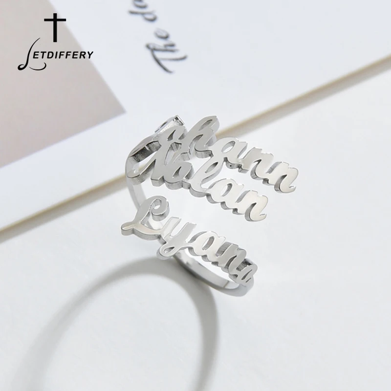 Name: Letdiffery-anillo de acero inoxidable personalizado con múltiples nombres para mujer, joyería familiar para amantes, familia, amigos, regalos únicos