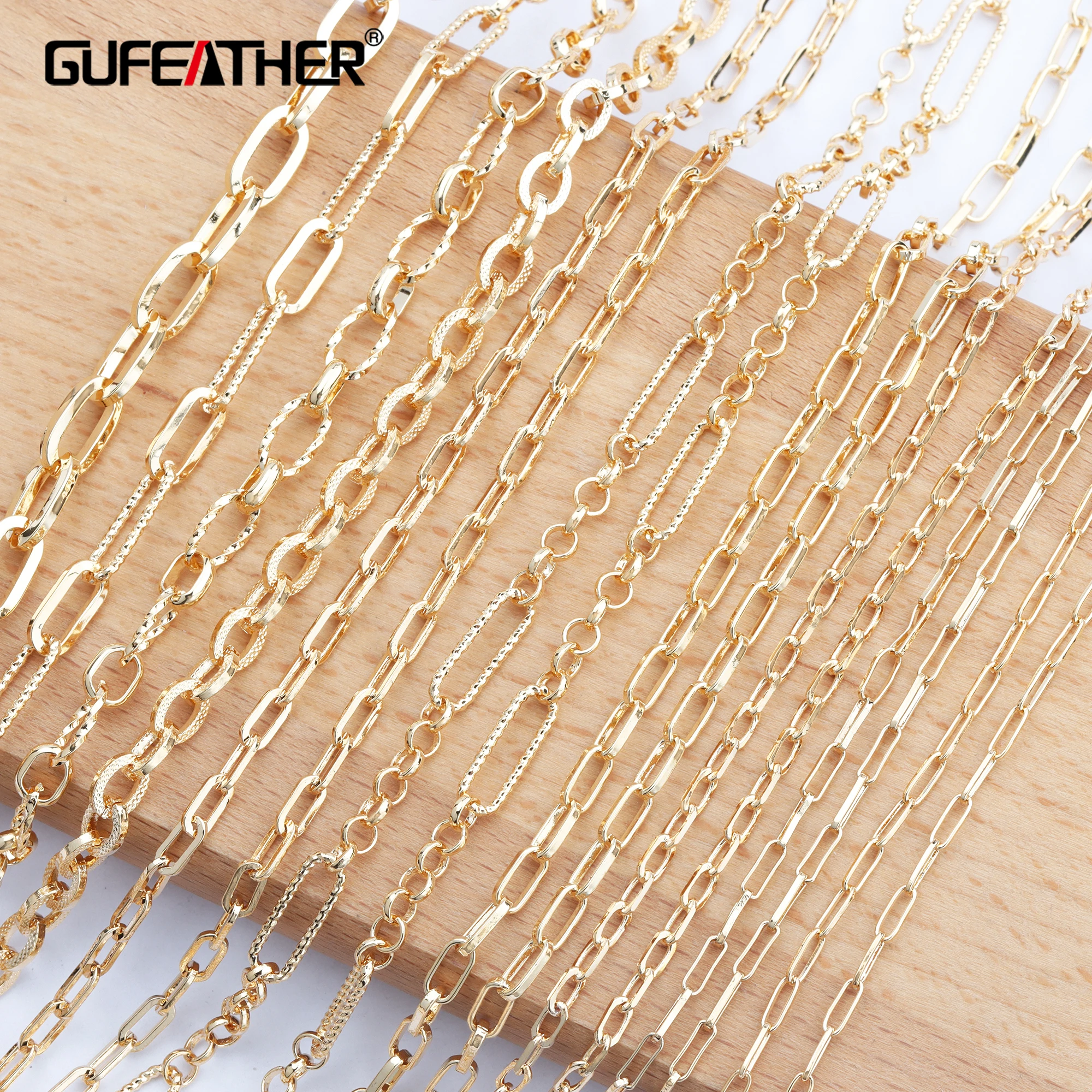 Name: GUFEATHER C86, accesorios de joyería, cadena de bricolaje, chapado en oro de 18k, 0,3 micras, collar de pulsera de bricolaje, hecho a mano, fabricación de joyas, 1 m/lote