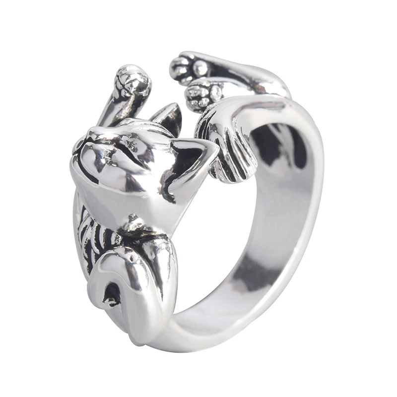 Name: Anillo de dedo abierto Retro Para gato para dormir, joyería con dedos ajustables, Animal Punk, moda única